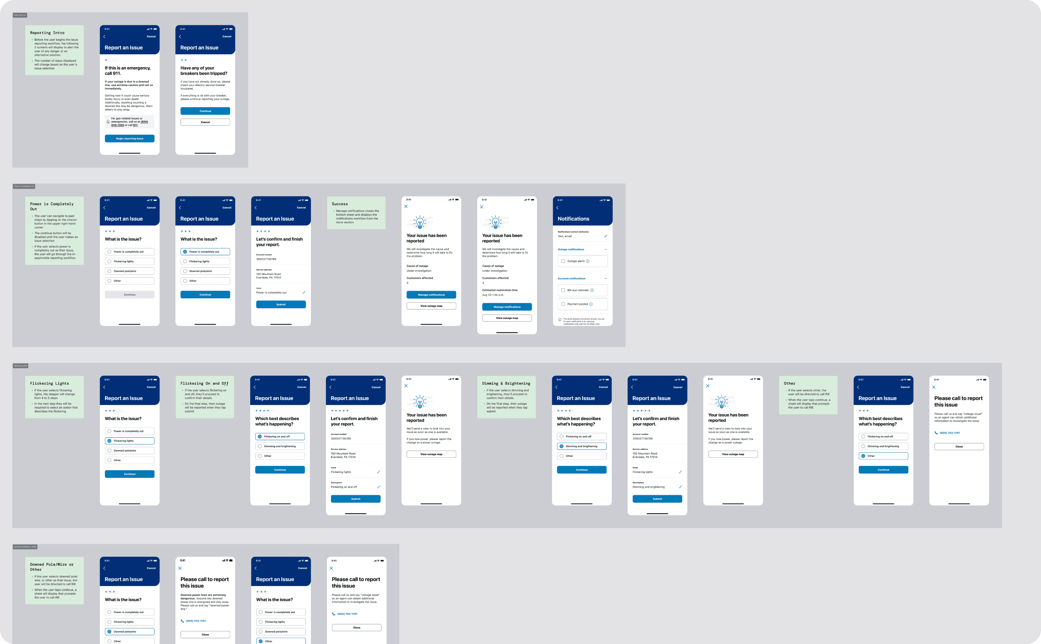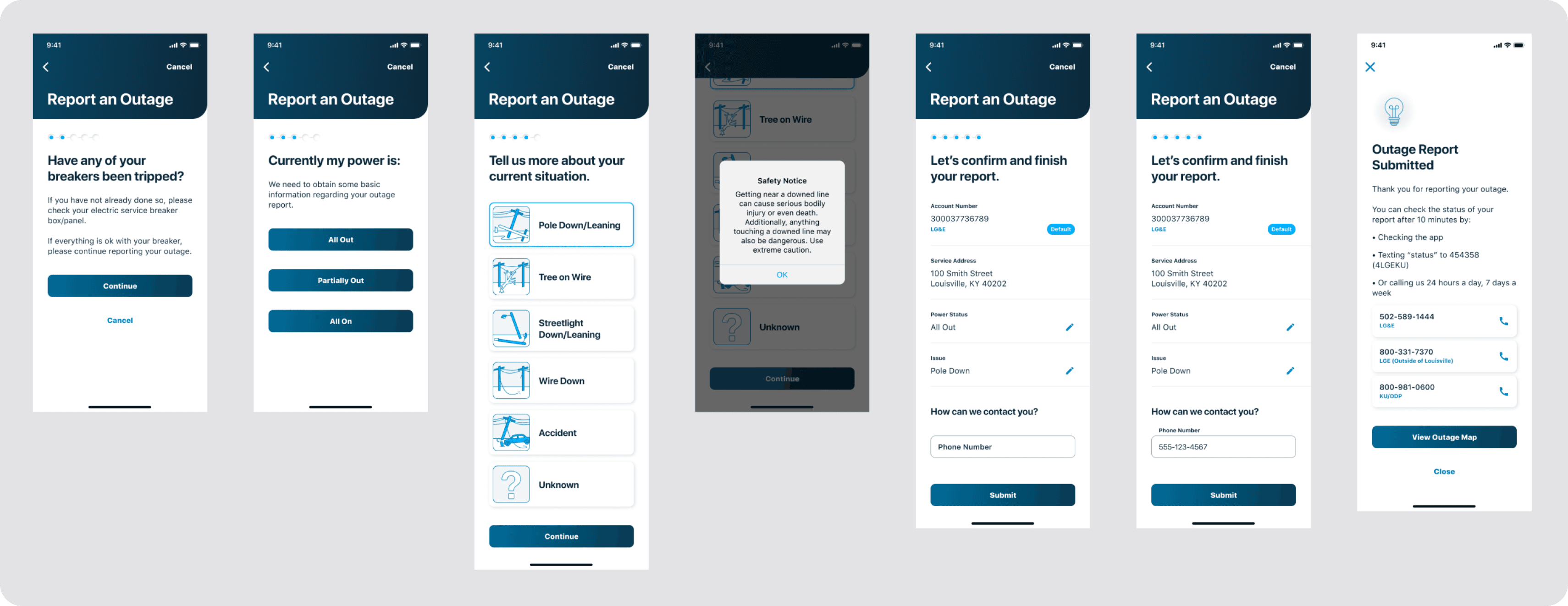 We applied the same approach to the user experiences. They align with LKE as much as possible except when business rules require updates to the workflows. The largest differences came from billing edge cases, outage reporting, and notification management.